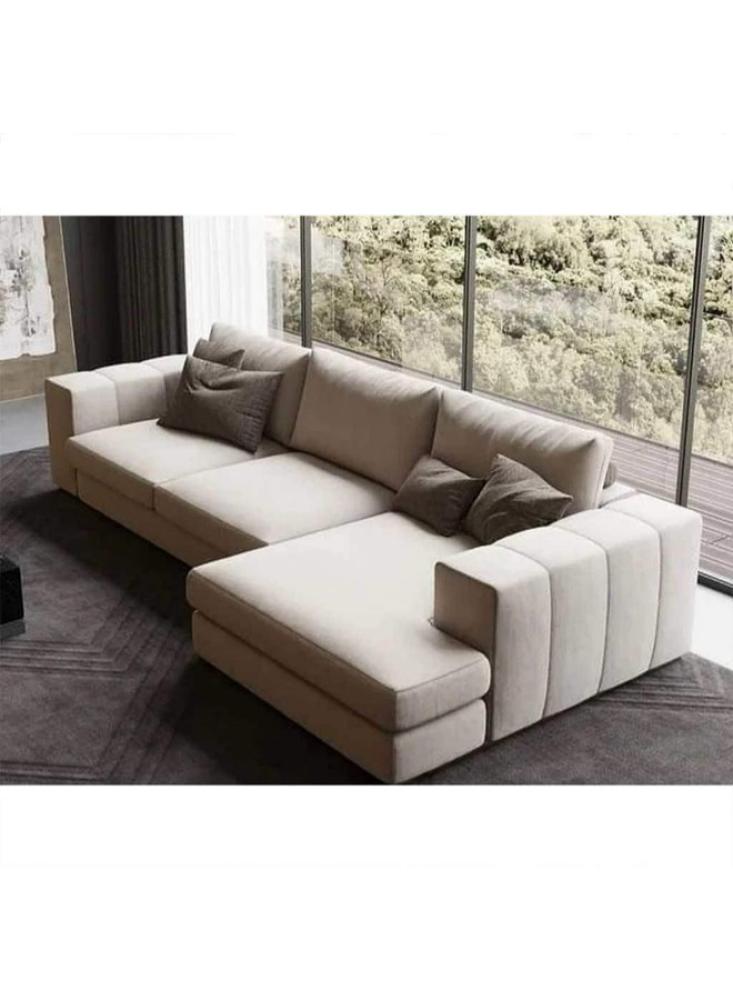 أريكة رمادية على شكل حرف L - 80x300x80x300 سم : • وصف مختصر: تمتد أريكة الكبيرة باللون الرمادي على شكل حرف L على 300 سم، وتوفر منطقة جلوس واسعة ومعاصرة للديكورات الداخلية الفسيحة. • المواصفات: الارتفاع: 80 سم، العمق: 80 سم، طول الجانب الطويل: 300 سم، اللون: رمادي، المادة: خشب ام دي اف، القماش: كتان، بلد المنشأ: السعودية.