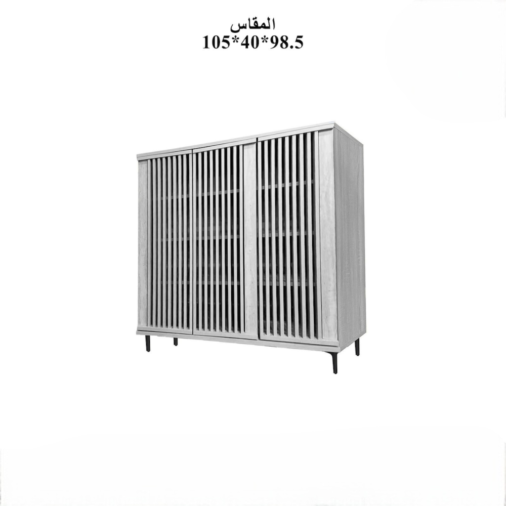 يوفر التصميم بثلاثة أبواب مساحة تخزين واسعة ومنظمة للأحذية بمختلف أنواعها وأحجامها. تساعد الأبواب المنزلقة في توفير المساحة وعدم إعاقة الحركة في الممرات الضيقة.