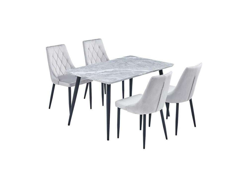 طاولة الطعام هذه مصممة لتوفير مساحة جلوس مريحة وأنيقة لـ 4 أشخاص ، مما يجعلها مثالية للعائلات الصغيرة أو الشقق ذات المساحات المحدودة. الطقم يجمع بين الرخام الفاخر والكراسي المنجدة الأنيقة ، مما يخلق مظهرًا جماليًا متكاملاً.