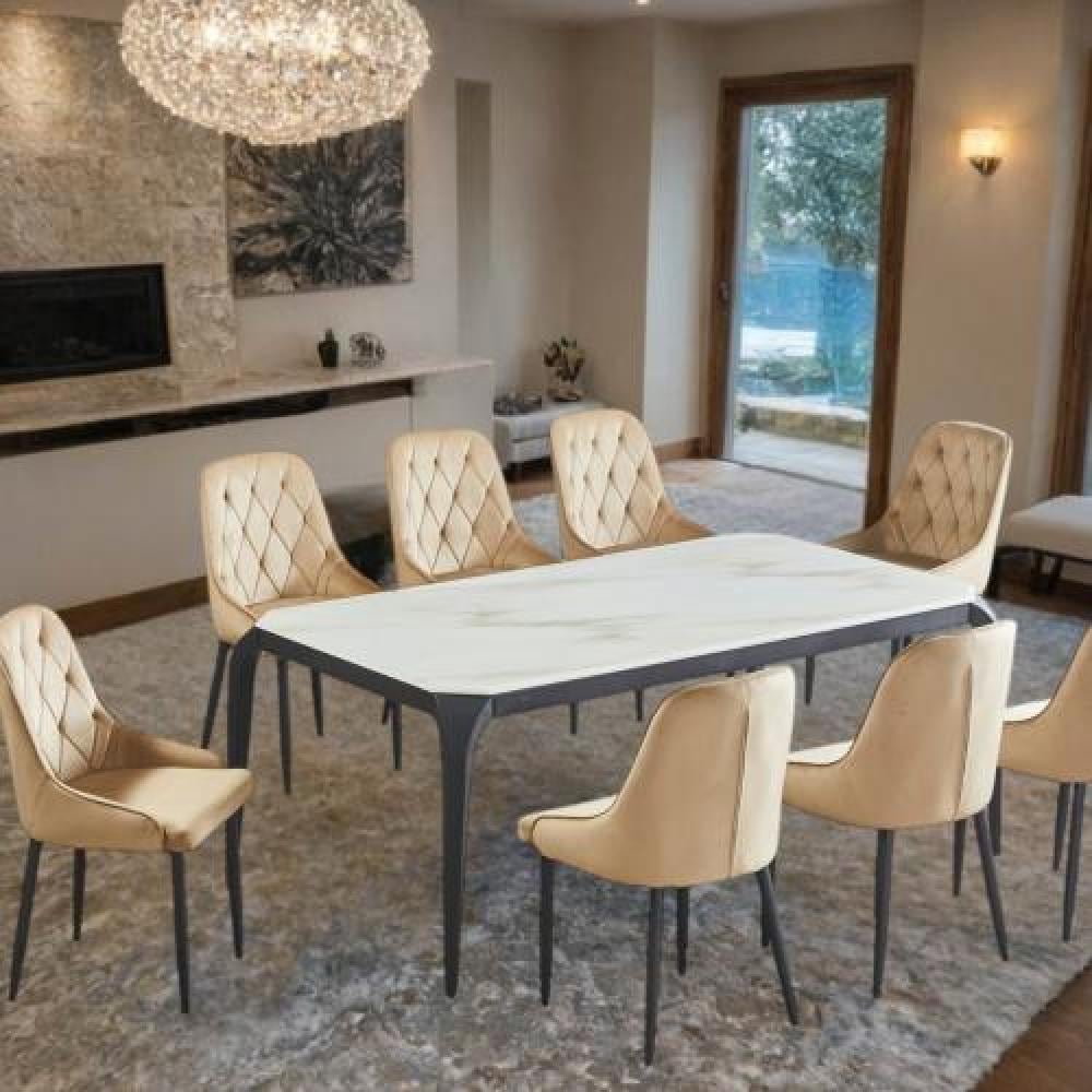 • اللون: اللون البيج للكراسي يتماشى بشكل جميل مع سطح الطاولة السيراميكي، مما يخلق تناغمًا في الألوان.