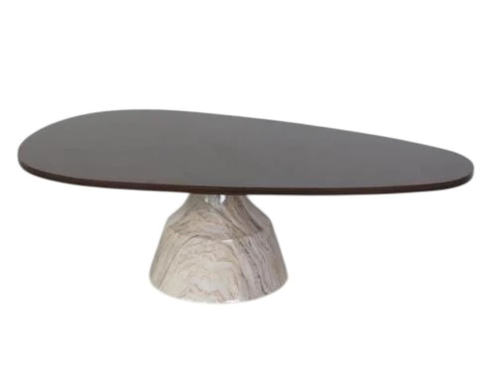 تتميز الطاولة بشكلها الأنيق والبسيط، حيث تتكون من سطح دائري أو بيضاوي الشكل وقاعدة دائرية أو مربعة متصلة بعمود مركزي.
