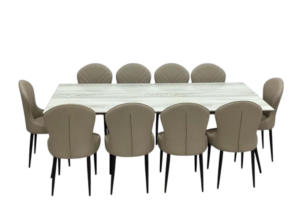 طاولة طعام أنيقة وعملية مع 10 كراسي (230 × 110 سم):