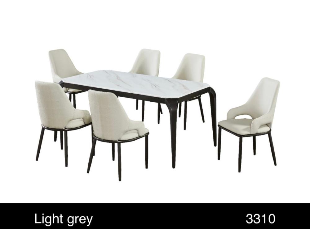 طاولة الطعام هذه مصممة لتوفير مساحة جلوس مريحة وأنيقة لـ 6 أشخاص، مما يجعلها مثالية للعائلات المتوسطة الحجم أو المناسبات الاجتماعية. الطقم يجمع بين الرخام الفاخر والكراسي المنجدة الأنيقة، مما يخلق مظهرًا جماليًا متكاملاً.