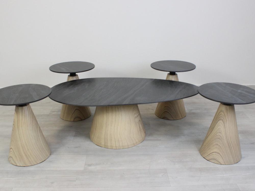 • الشكل: تتميز الطاولة بشكلها المبتكر، حيث تتكون من عدة طاولات صغيرة مربعة أو مستطيلة او دائرية الشكل قابلة للطي والتخزين بشكل متداخل.