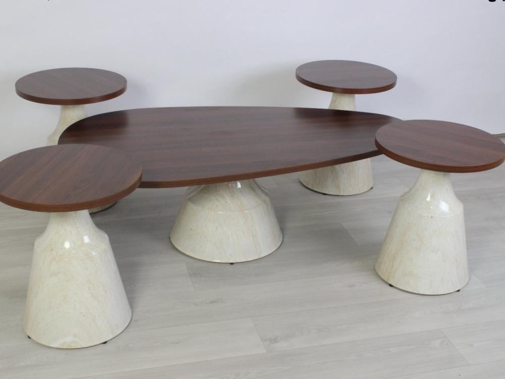 سطح الطاولات مصنوع من الاكرليك او الخشب أو الزجاج او الرخام الصناعي والسراميك
