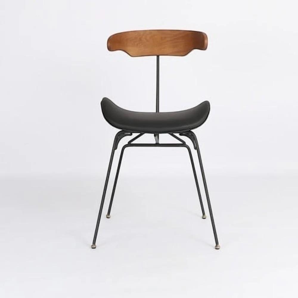 - الجزء الخلفي من الكرسي متصل بإطار معدني أسود، و يضيف للكرسي لمسة من المتانة.