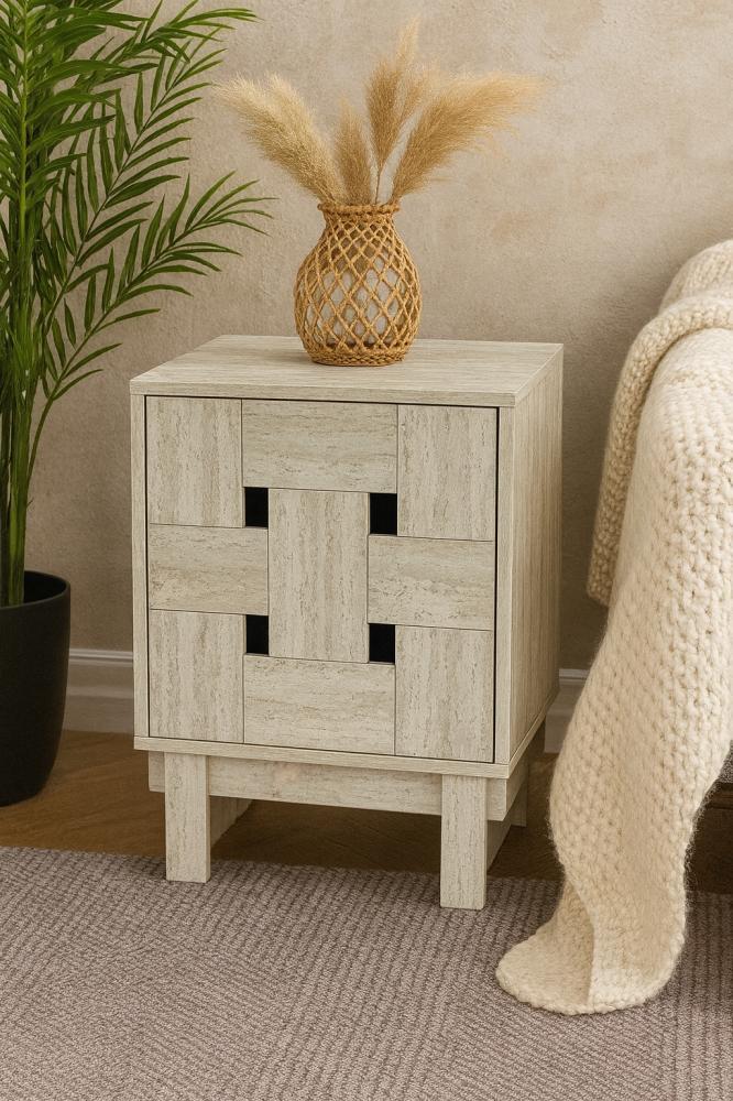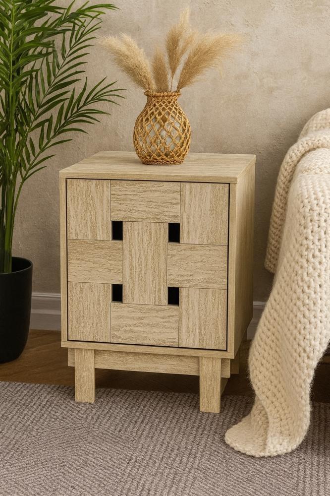• احصل على كومودينو مودرن بتصميم راقٍ يجمع بين الأناقة والوظيفة، حيث تضيف لمسة دفء طبيعية إلى الغرفة مع مساحة تخزين عملية تحافظ على ترتيب وأناقة المكان.