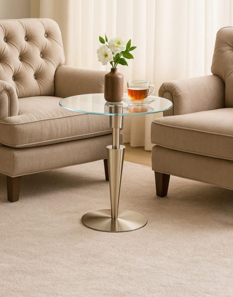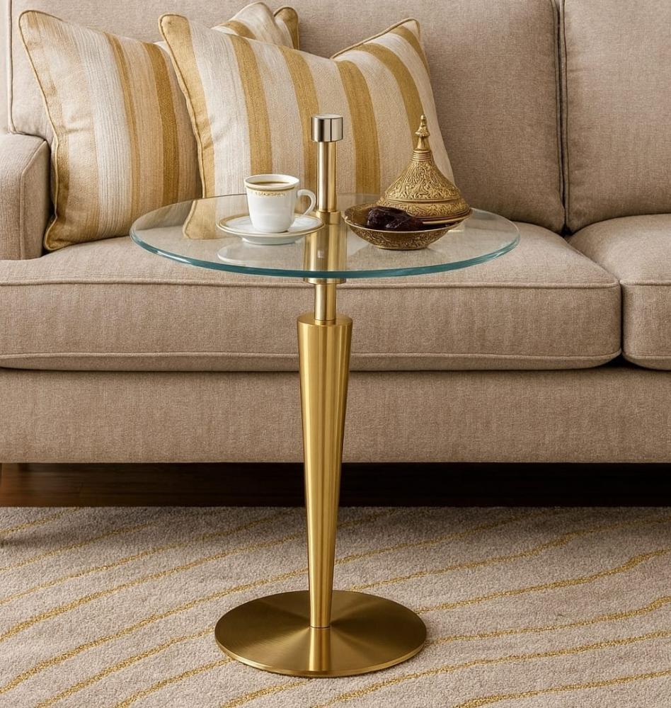 أضف قطعة فنية وعملية إلى غرفة جلوسك مع طاولة الخدمة العصرية هذه. يجمع تصميمها الراقي بين عناصر فاخرة: سطح زجاجي شفاف يمنح إحساسًا بالاتساع، وهيكل معدني باللون الذهبي والفضي اللامع يضفي لمسة من الدفء والفخامة، وقاعدة من الاستيل التي تضمن ثباتًا مثاليًا وجمالًا لا يضاهى.