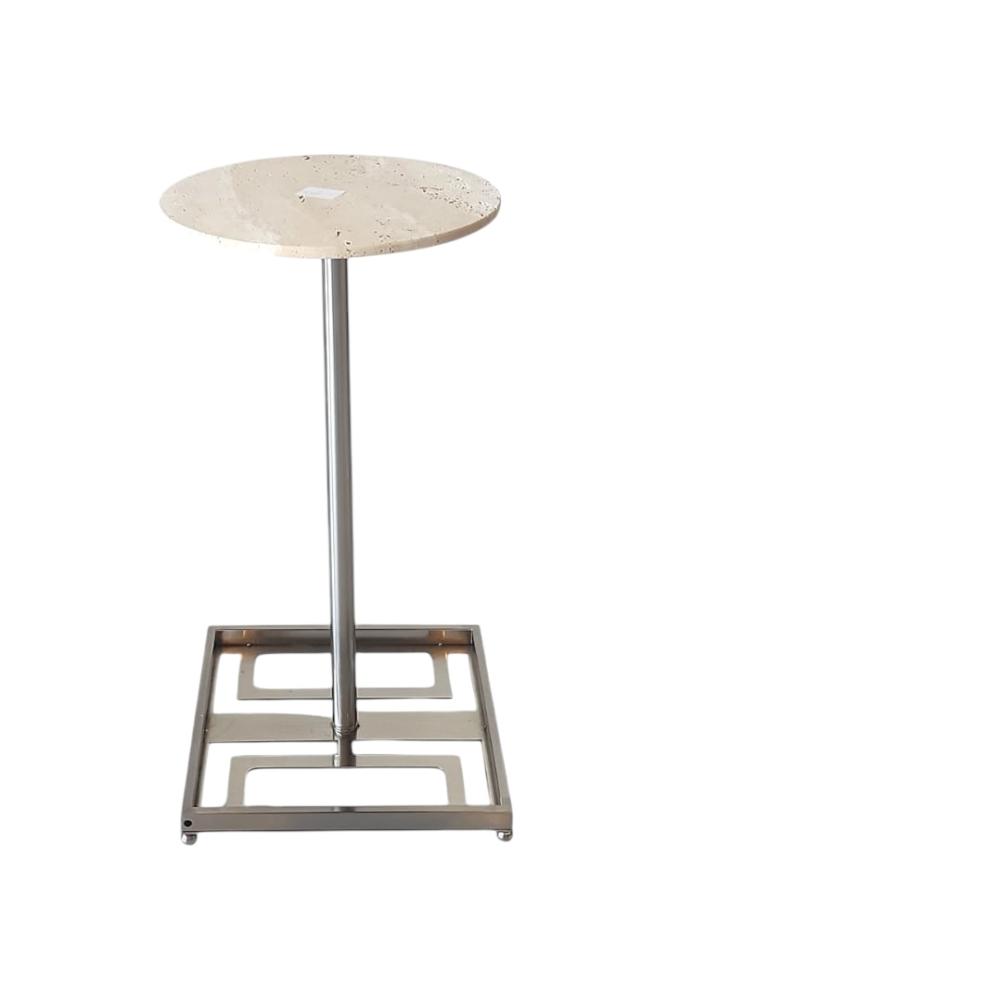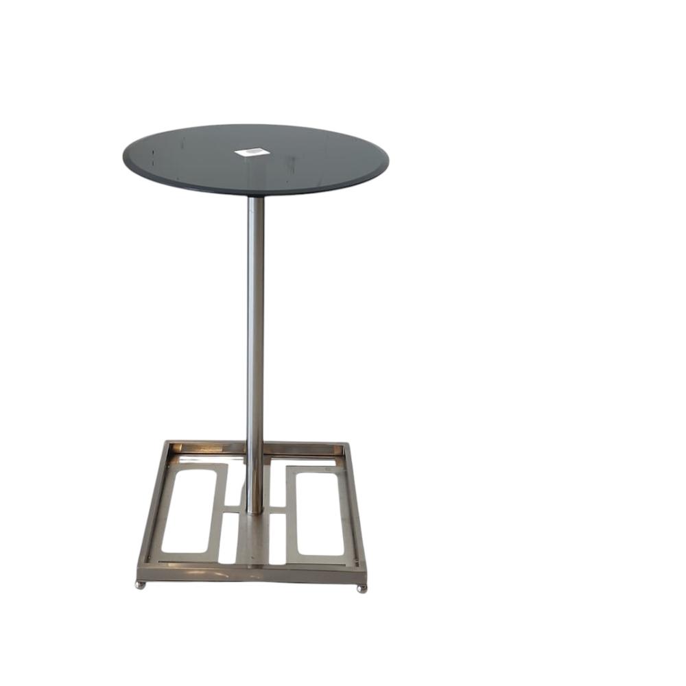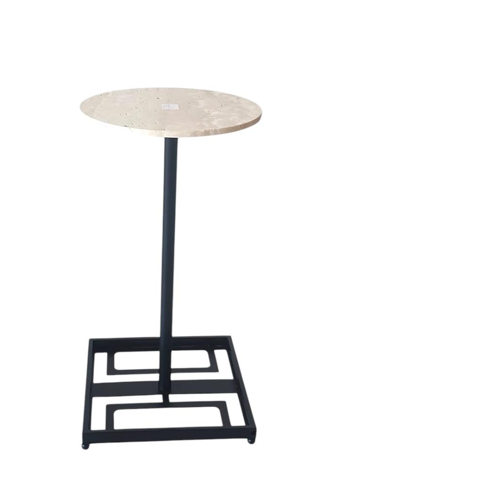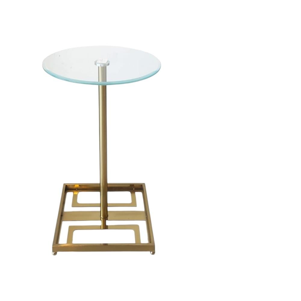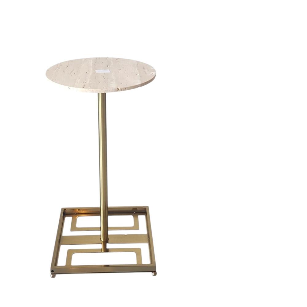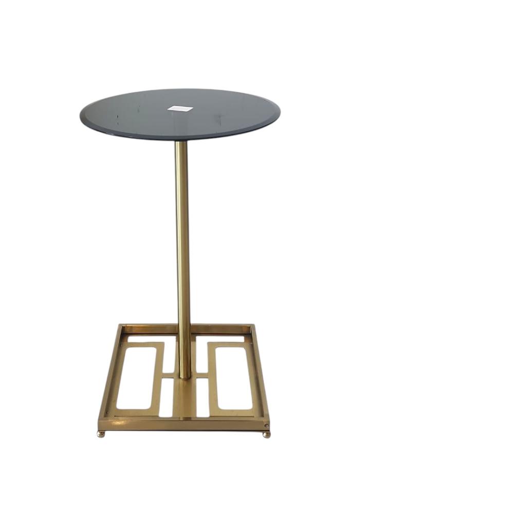 تتكون من عمود واحد أو ساق واحدة متصلة بقاعدة مربعة أو مستديرة. هذه القاعدة مصنوعة من المعدن المطلي باللون الذهبي، مما يضفي على الطاولة مظهرًا فاخرًا وأنيقًا.