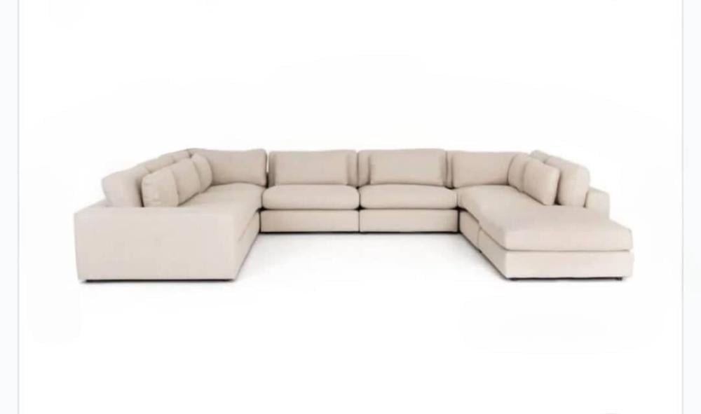 أضف لمسة من الفخامة والأناقة إلى غرفة معيشتك مع هذا الكنب الزاوية العصري على شكل حرف U بلونه البيج الراقي. يجمع هذا الكنب بين التصميم الأنيق والراحة القصوى، مما يجعله الخيار المثالي لأي مساحة داخلية تبحث عن الجمال والجودة.